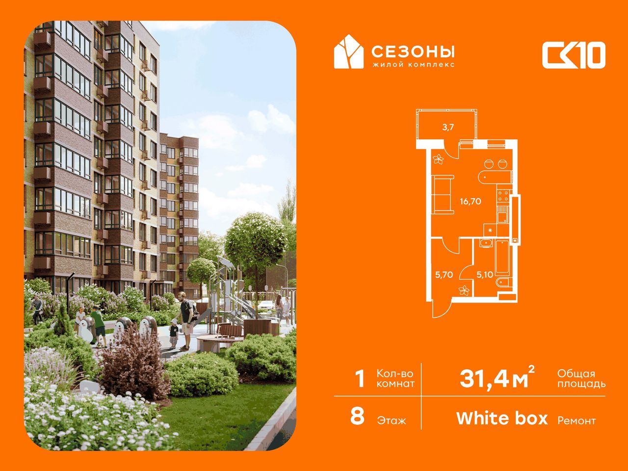 Квартира на 8 этаже в жилом комплексе «СЕЗОНЫ». 1-комнатная квартира площадью 31,35 м². Современное пространство с удобной планировкой, просторной кухней 6,1 м², светлыми жилыми комнатами 10,7 м² и функциональным санузлом [ПлощадиСанузловСовместных] м².