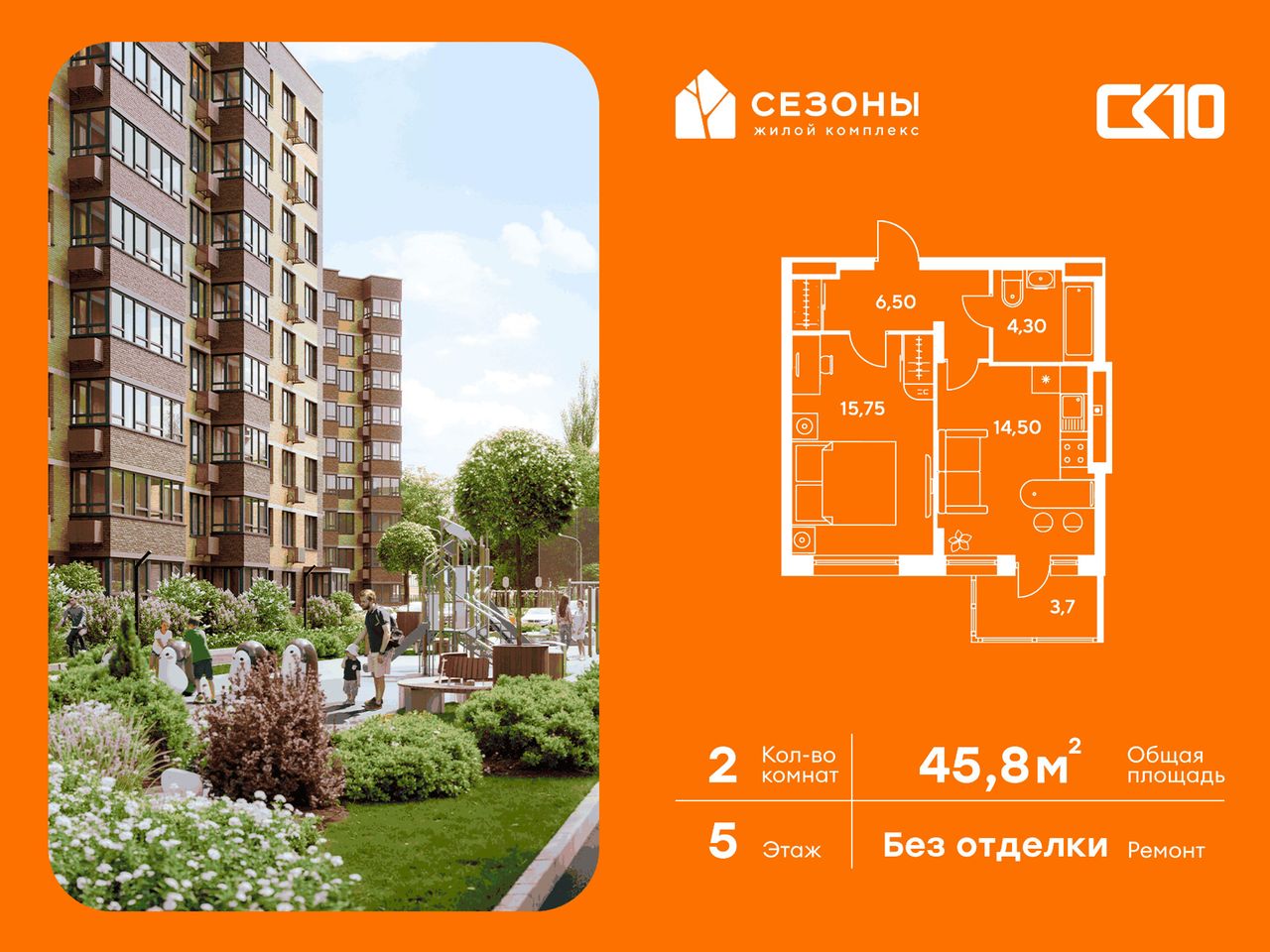 2-комнатная — 45,75 м² 5/9 эт. в Сезоны