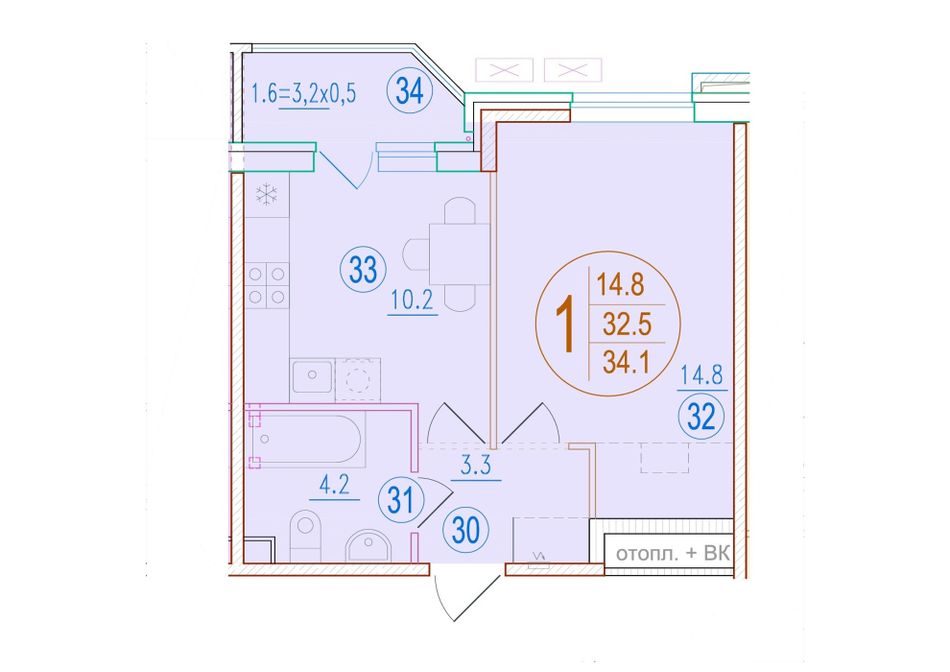 Общая площадь34,1 м²