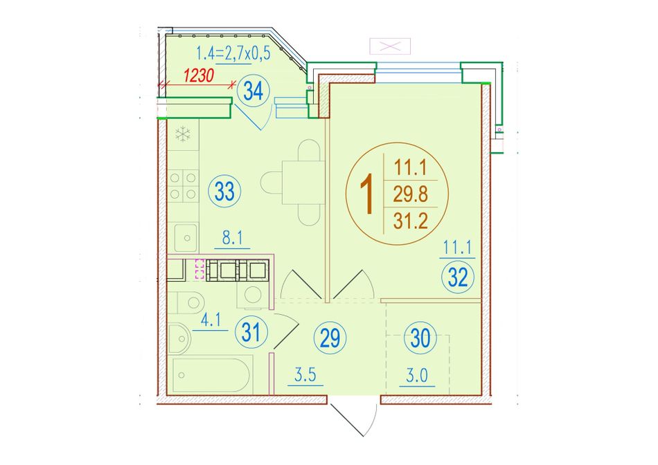 Общая площадь31,2 м²