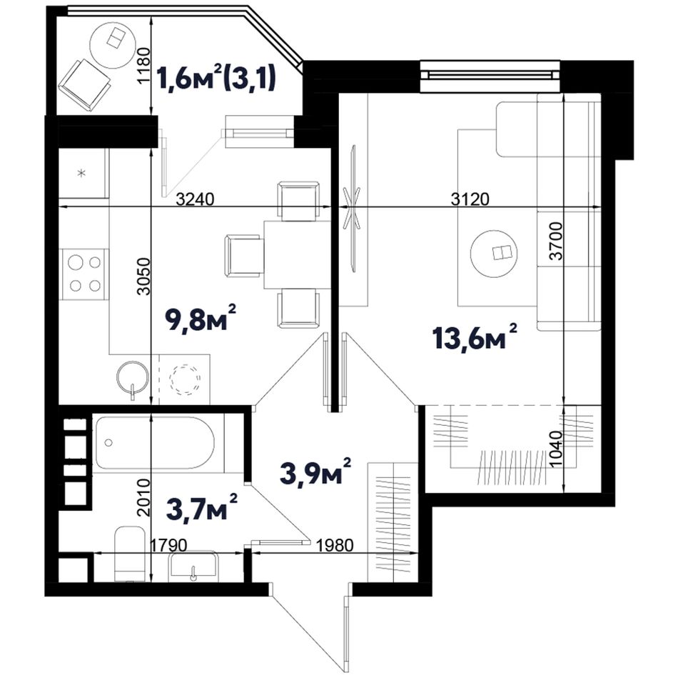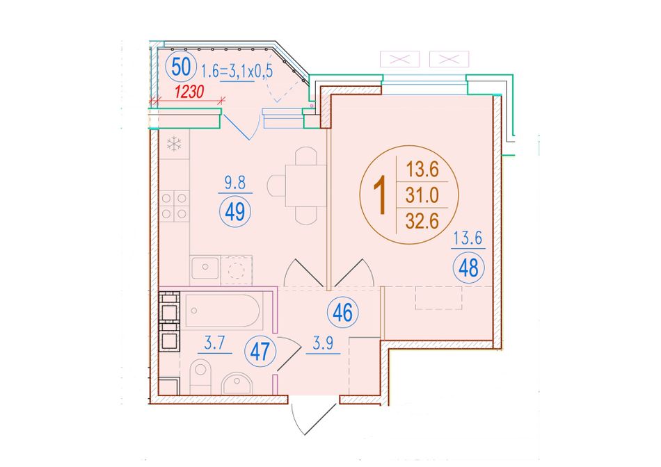 1-комнатная — 32,6 м² 6/9 эт. в Sport Village (Спортивная деревня)