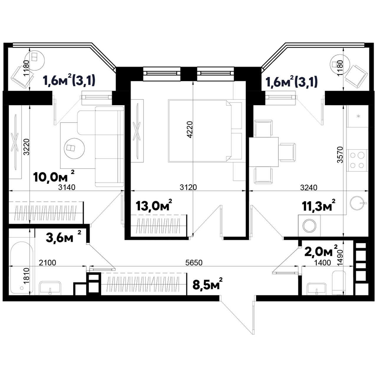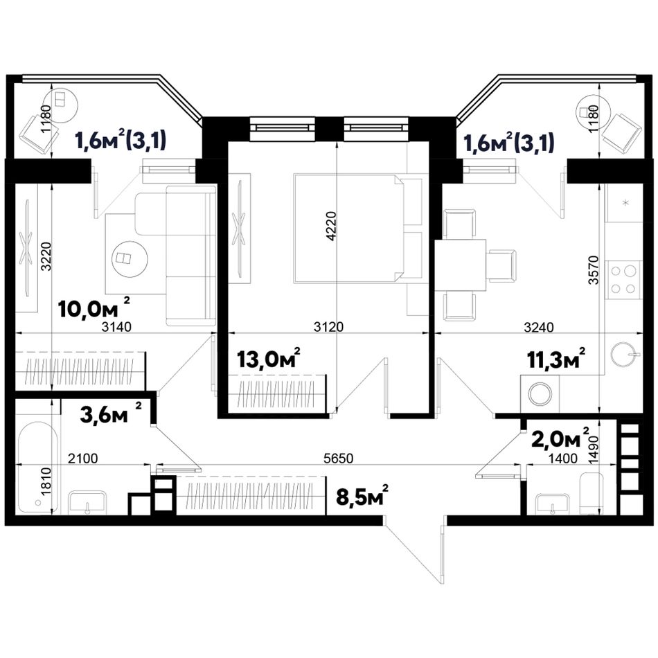 2-комнатная — 51,6 м² 6/9 эт. в Sport Village (Спортивная деревня)