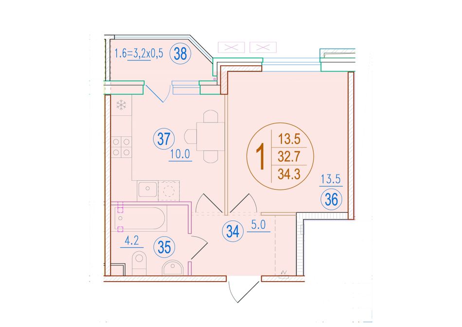 Общая площадь34,3 м²