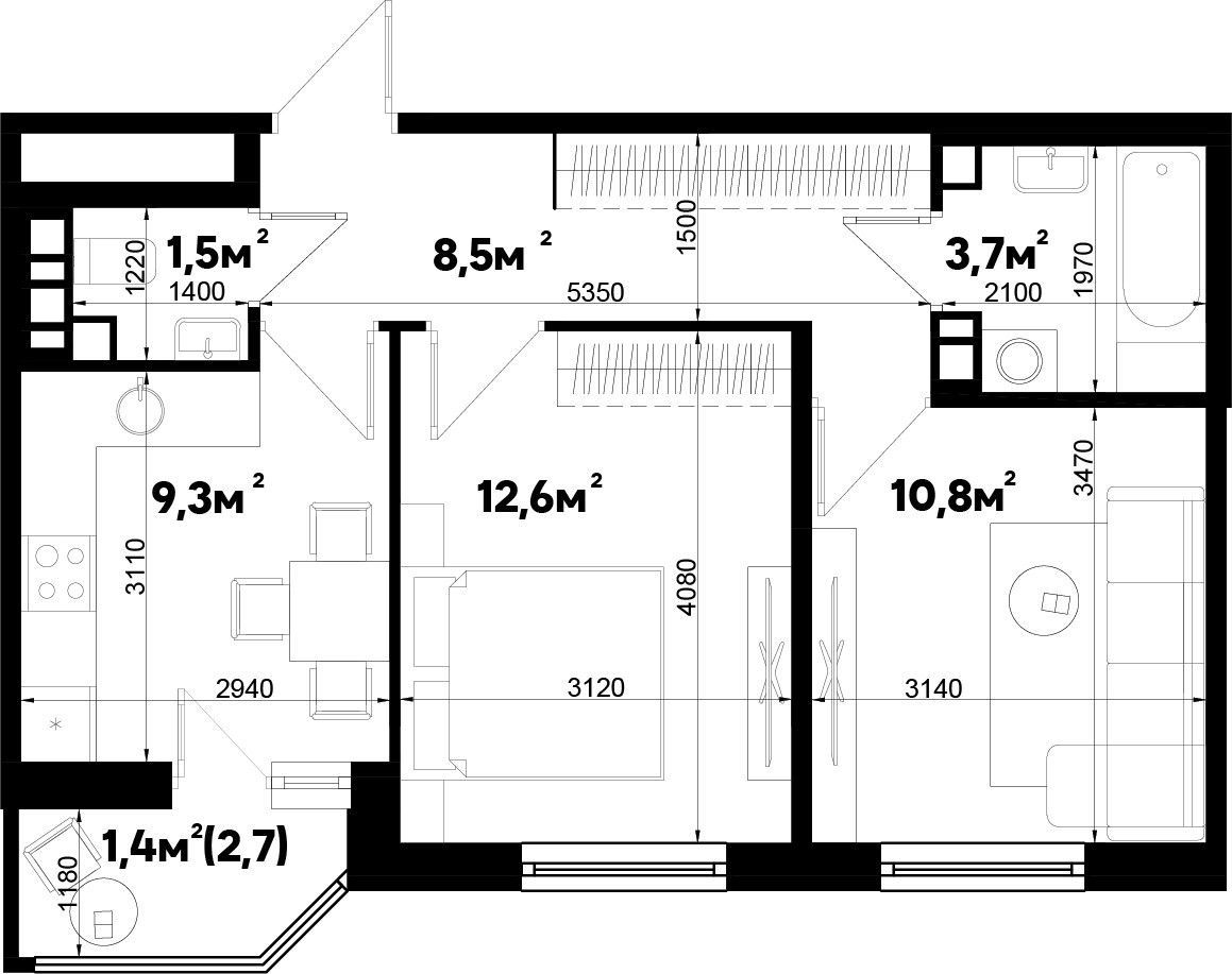 2-комнатная — 49,2 м² 1/9 эт. в Sport Village (Спортивная деревня)