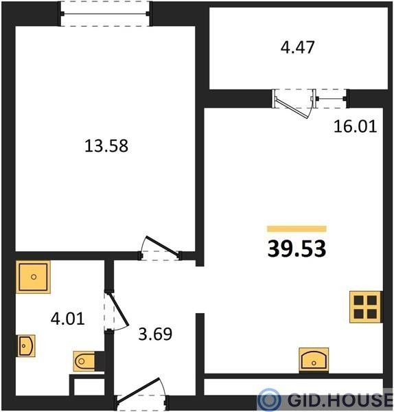 Общая площадь39,53 м²