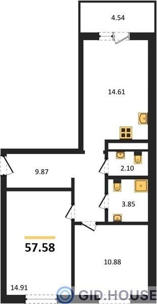 Общая площадь57,58 м²