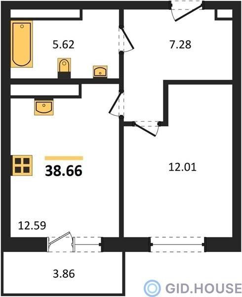 1-комнатная — 38,66 м² 8/16 эт. в Тёплые края
