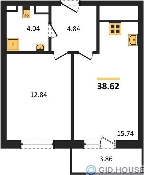 Общая площадь38,62 м²