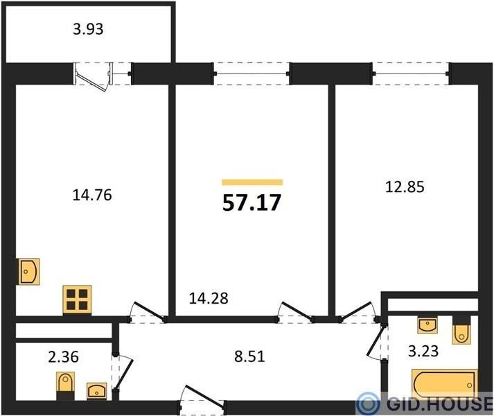 2-комнатная — 57,17 м² 2/18 эт. в Тёплые края