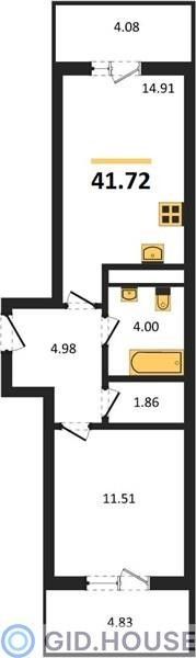 1-комнатная — 41,72 м² 9/18 эт. в Тёплые края