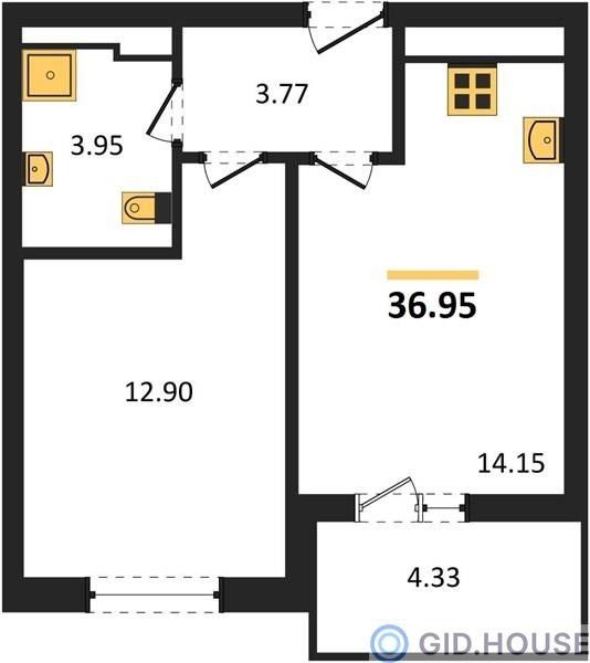 1-комнатная — 36,95 м² 10/18 эт. в Тёплые края