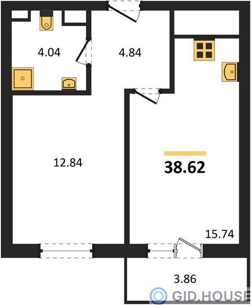 Квартира: 1 к 38,62 кв.м., 16 этаж в комплексе Теплые Края, 1 очередь, корп.3, сдача: 2кв. , этажей: 18, адрес Елизаветинская ст-ца, , Застройщик: Семья.