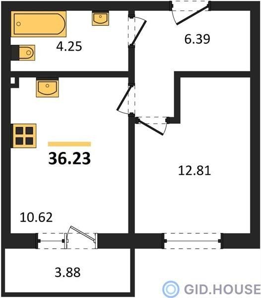 Общая площадь36,23 м²