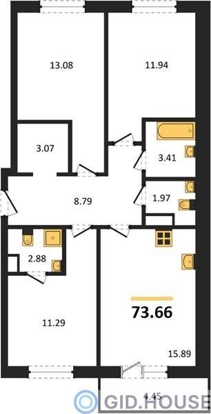 3-комнатная — 73,66 м² 9/9 эт. в Тёплые края