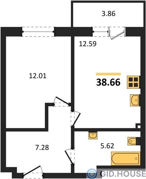 1-комнатная — 38,66 м² 15/18 эт. в Тёплые края