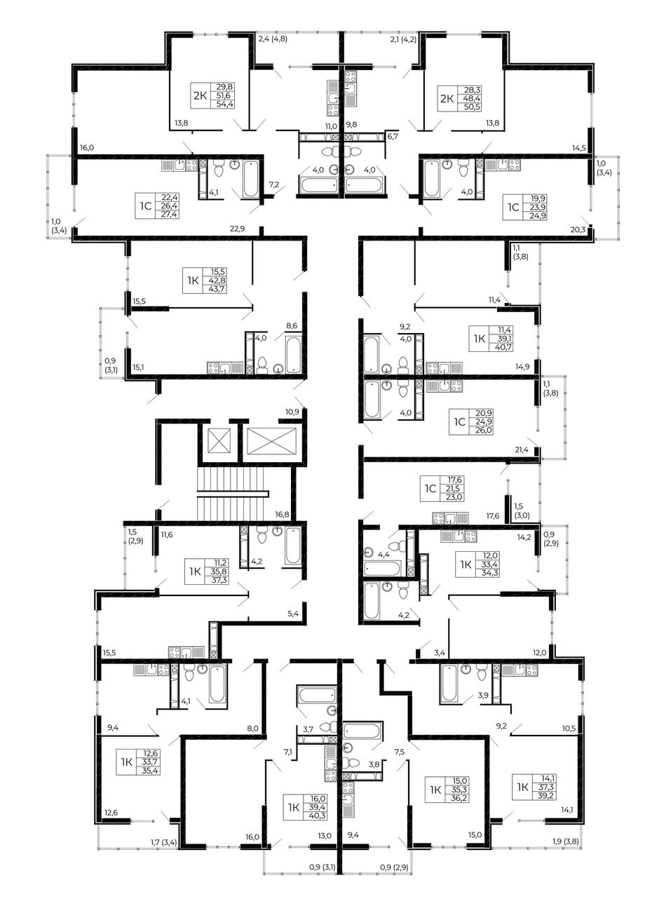 | 2-комн. | 39 - 57 м² | 6,4 - 10,8 млн ₽ |
