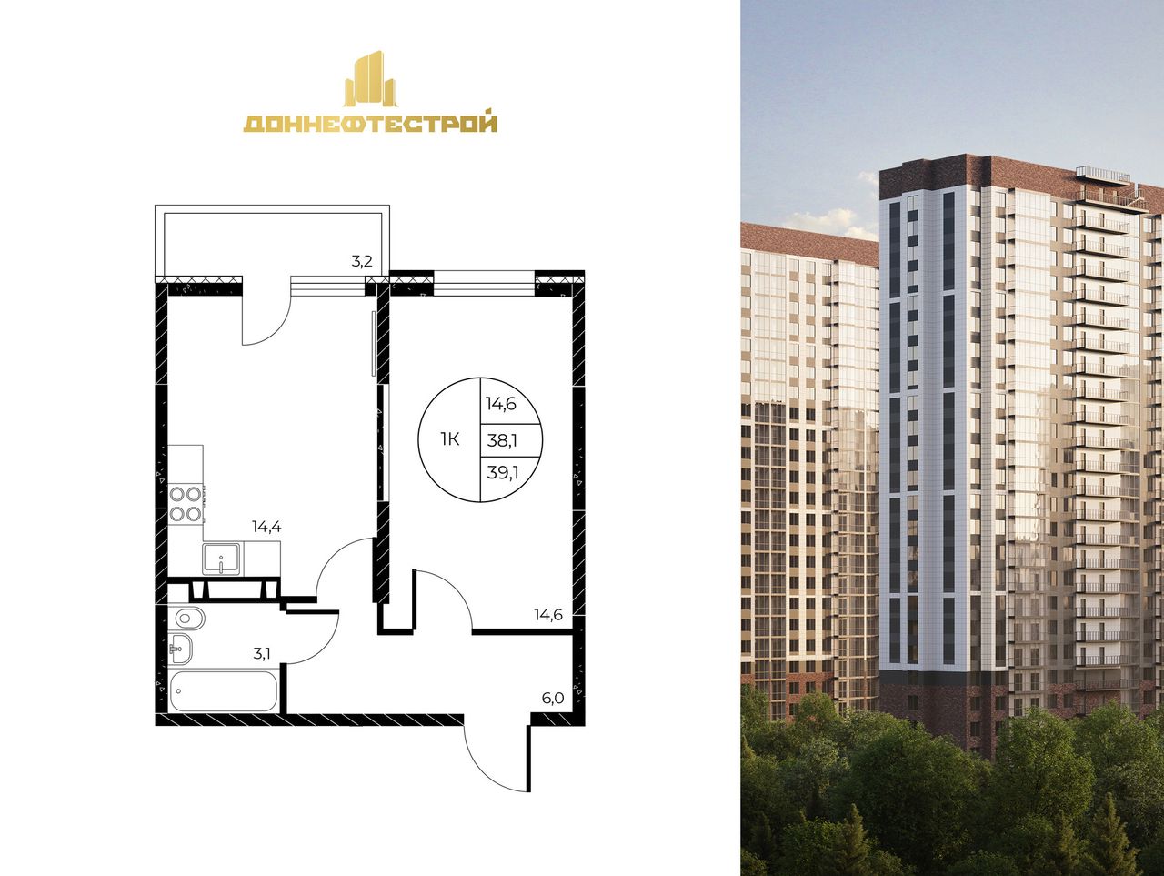 Общая площадь39,1 м²