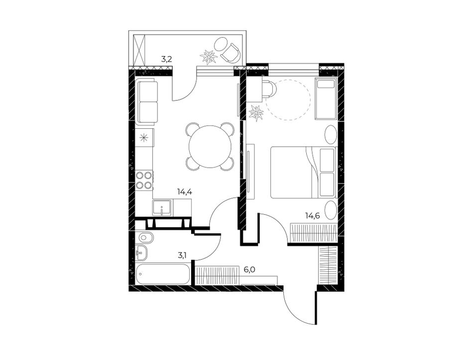| 1-комн. | 34 - 44 м² | 4,5 - 6 млн ₽ |