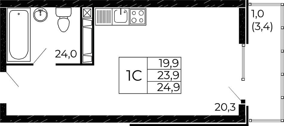 | Студия | 23 - 28 м² | 3 - 4,6 млн ₽ |