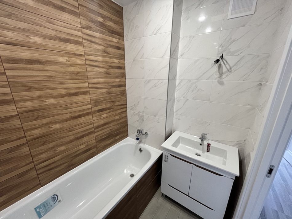 • в санузлах установлена сантехника - подвесной унитаз, ванна, раковина с тумбой, смесители.