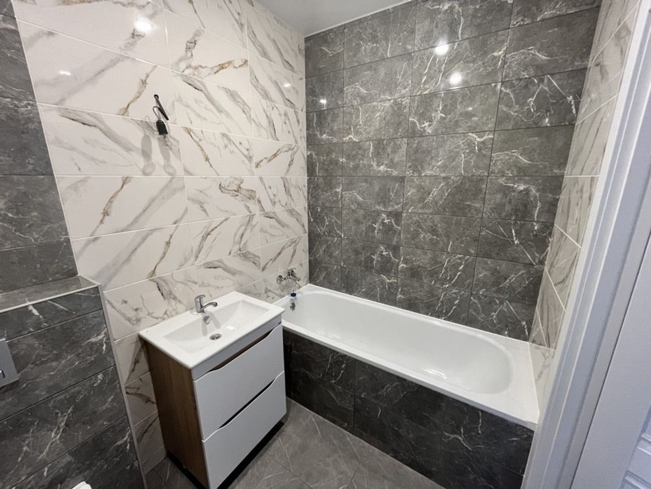 • в санузлах установлена сантехника - подвесной унитаз, ванна, раковина с тумбой, смесители.