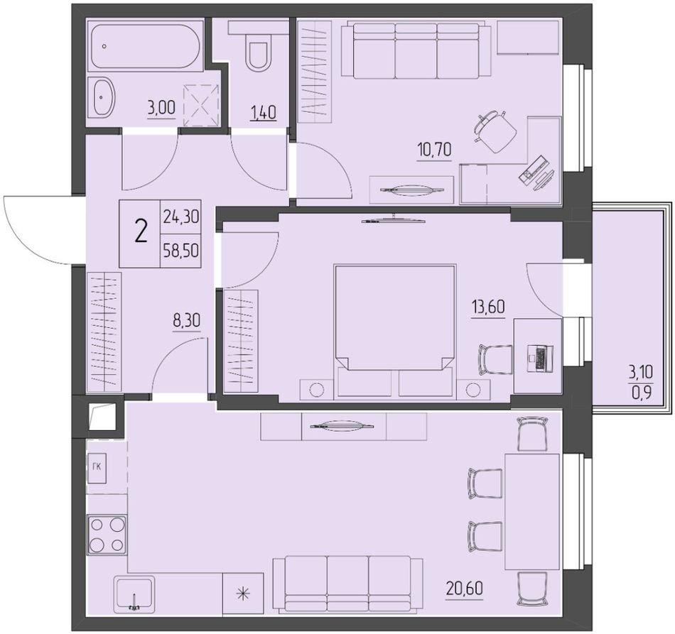 • кухонный гарнитур, включая технику (по желанию, дополнительная опция);