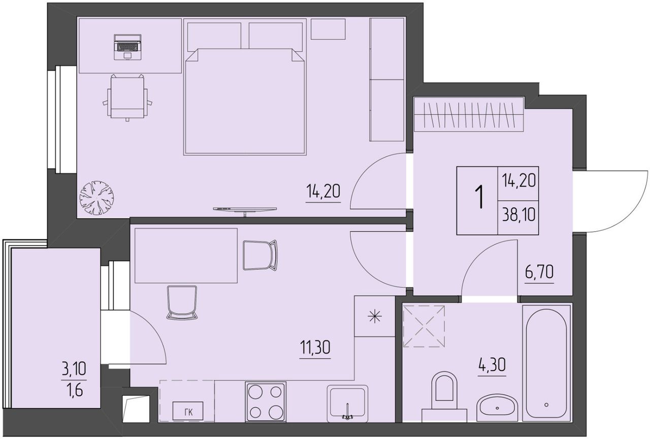 • кухонный гарнитур, включая технику (по желанию, дополнительная опция);