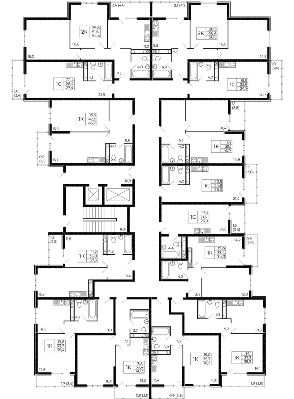 | 2-комн. | 39 - 57 м² | 6,4 - 10,8 млн ₽ |