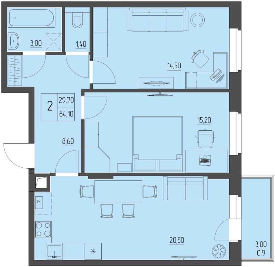 • кухонный гарнитур, включая технику (по желанию, дополнительная опция);