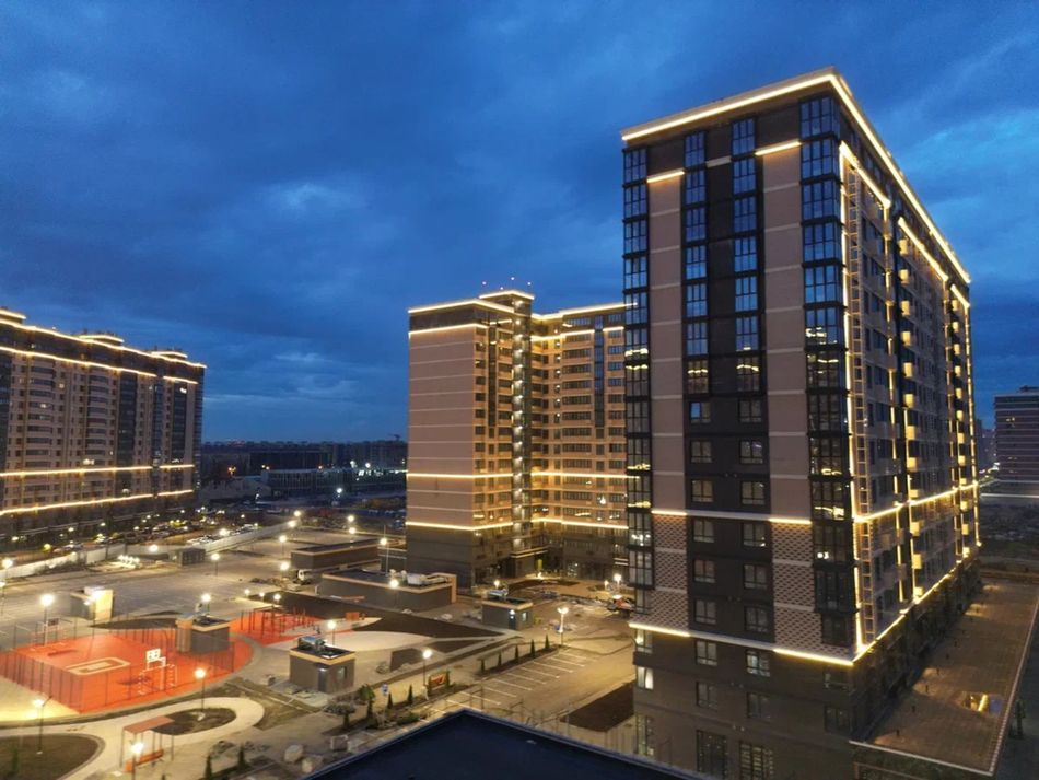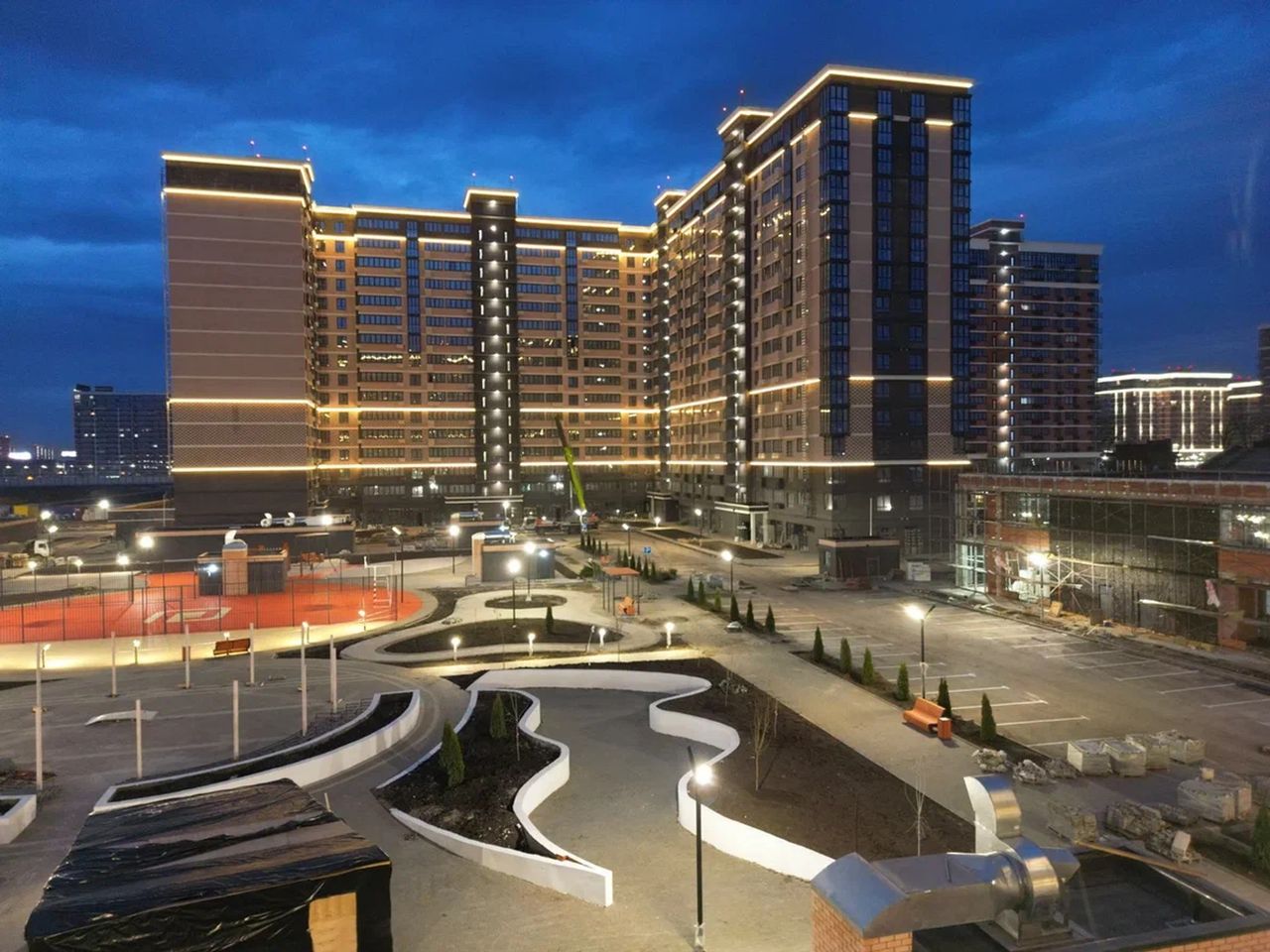 Единый европейский стиль фасадов, благоустроенная территория, собственный детский садик и школа, ландшафтное озеленение, подземный и многоуровневый паркинг для автомобилей.