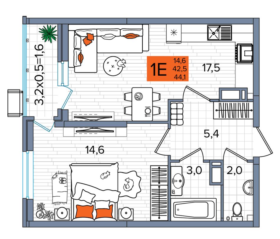 1-комнатная — 44,1 м² 16/16 эт. в Сармат