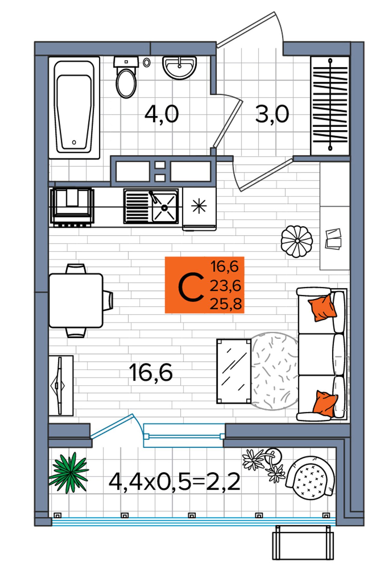 Общая площадь25,8 м²