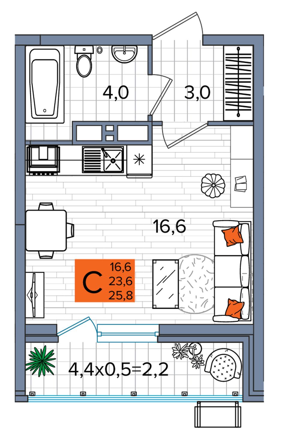 Студия — 25,8 м² 14/16 эт. в Сармат
