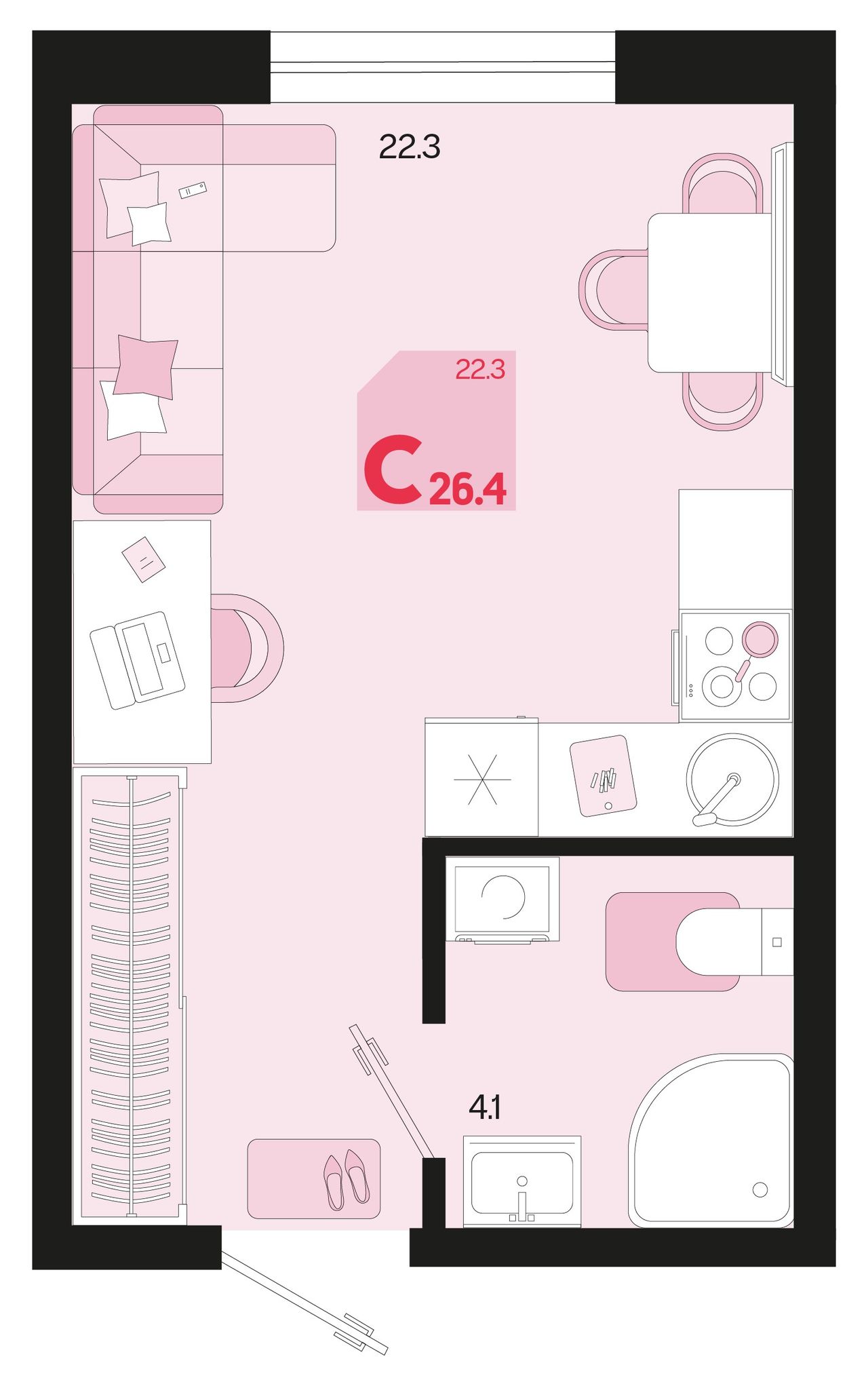 1-комнатная — 26,4 м² 2/18 эт. в Первое место
