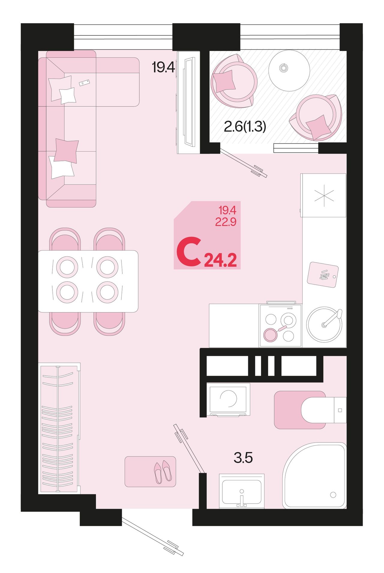 1-комнатная — 24,2 м² 8/18 эт. в Первое место
