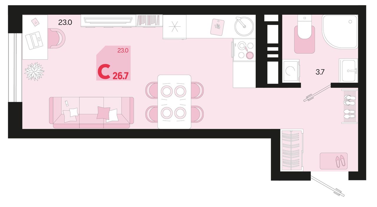 Общая площадь26,7 м²