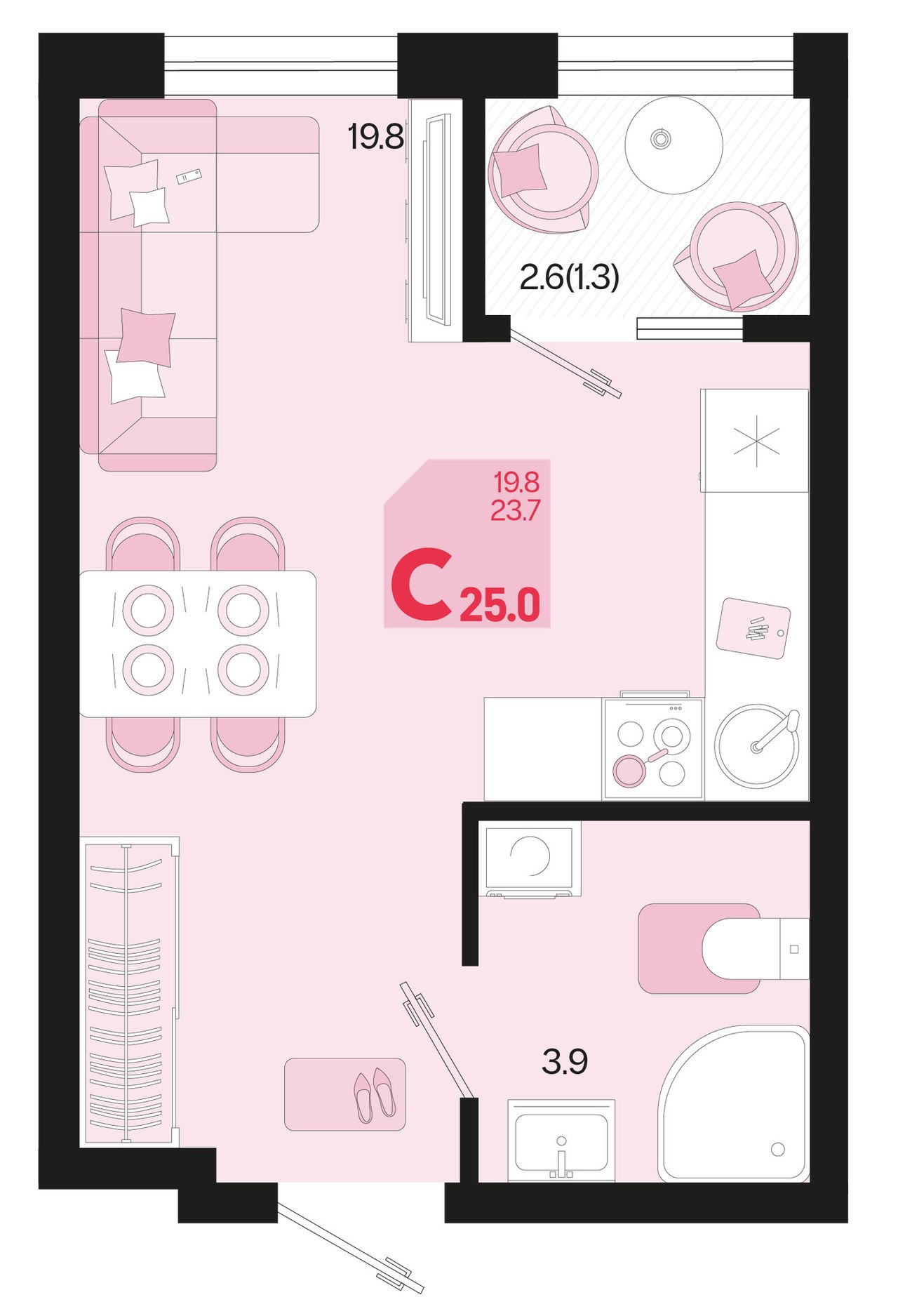 Общая площадь25 м²