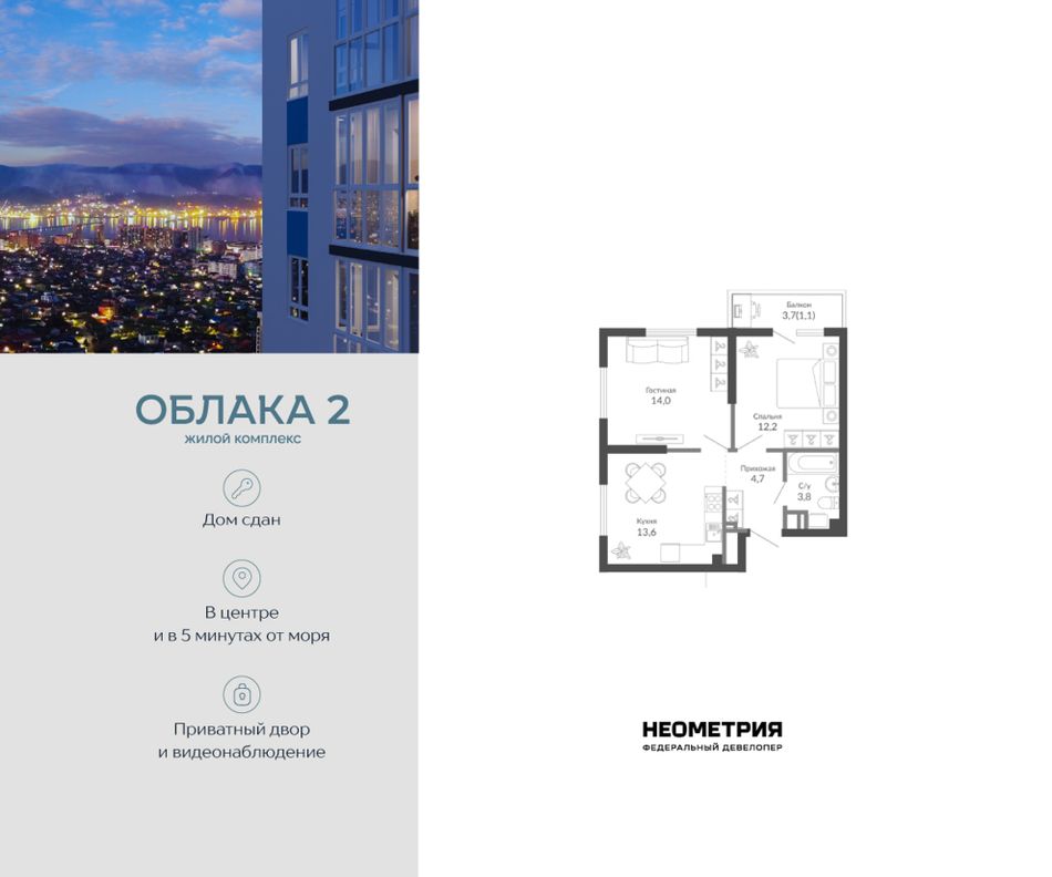 Продается квартира в жилом комплексе «Облака» от федерального девелопера «Неометрия».
