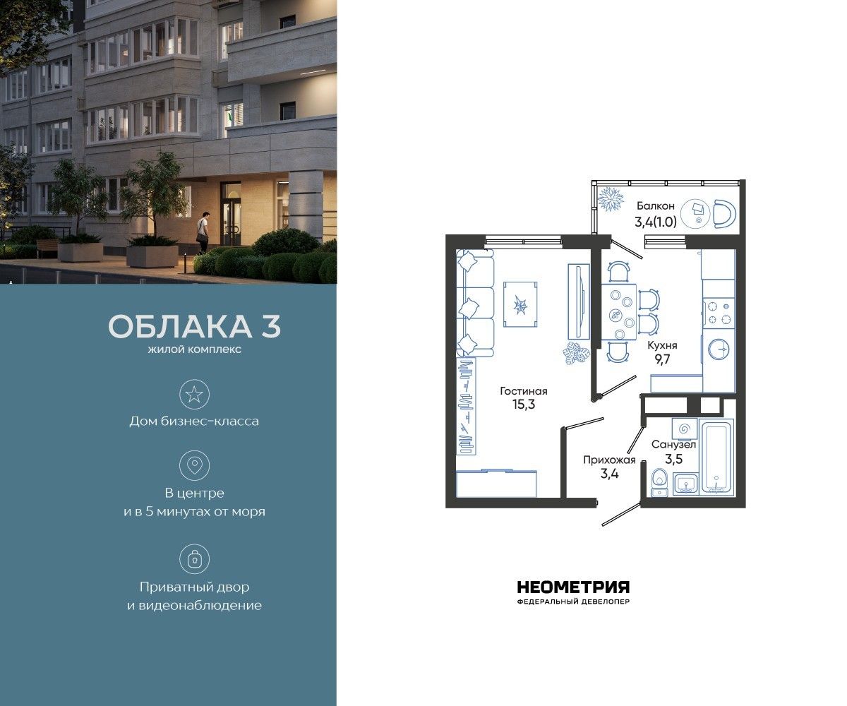 Продается квартира в жилом комплексе «Облака» от федерального девелопера «Неометрия».