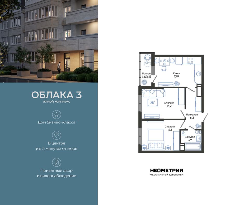 Продается квартира в жилом комплексе «Облака» от федерального девелопера «Неометрия».