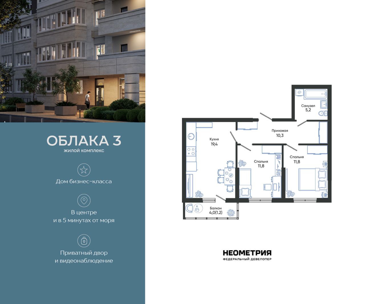 Продается квартира в жилом комплексе «Облака» от федерального девелопера «Неометрия».