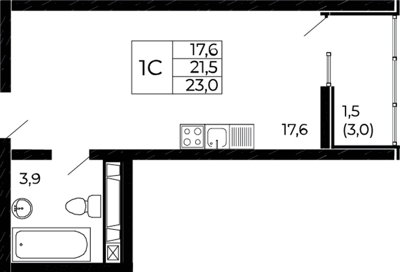 | Студия | 23 - 24 м² | 3,8 - 4,6 млн ₽ |