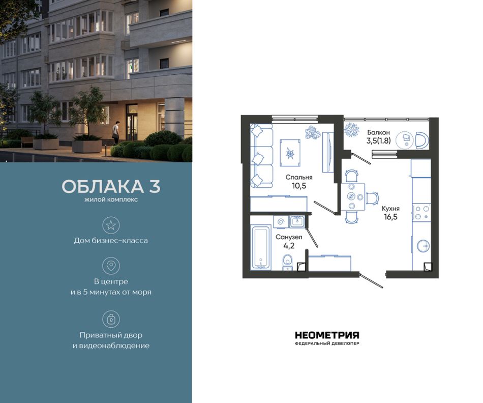 Продается квартира в жилом комплексе «Облака» от федерального девелопера «Неометрия».