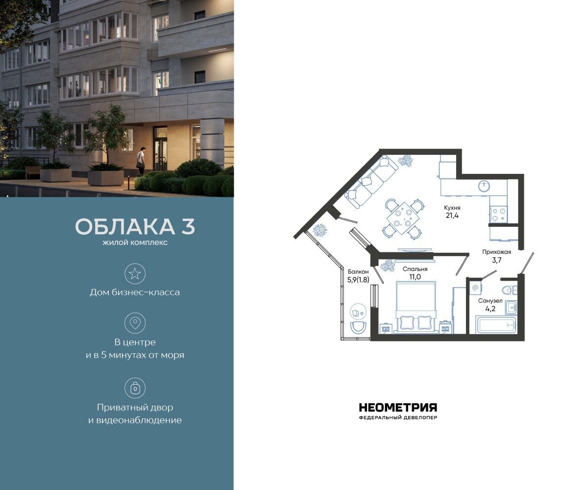Продается квартира в жилом комплексе «Облака» от федерального девелопера «Неометрия».