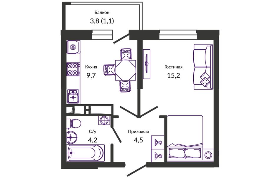 Жилая площадь15,4 м²