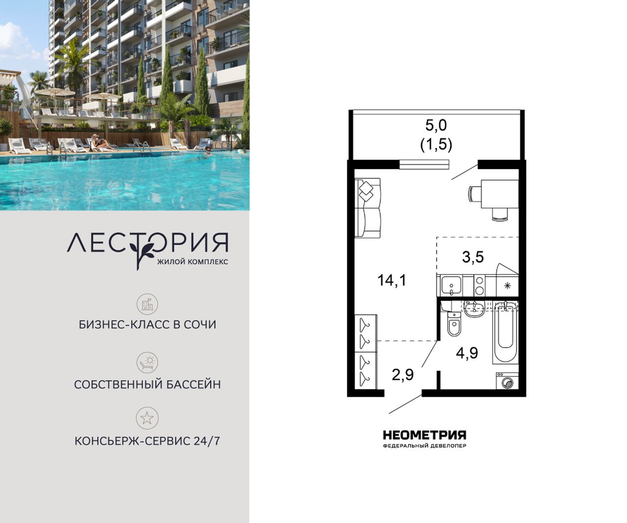 1-комнатная — 26,9 м² 1/17 эт. в Лестория