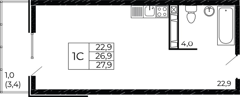 Общая площадь27,9 м²