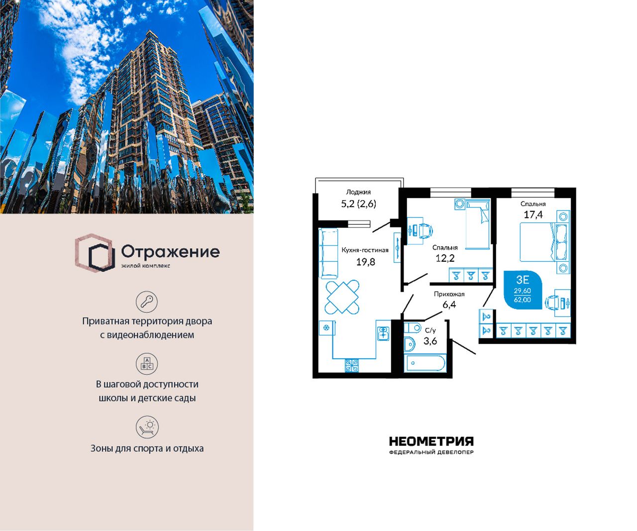 Продается квартира в жилом комплексе «Отражение». Это новый стандарт комфортного проживания от федерального девелопера «Неометрия».
