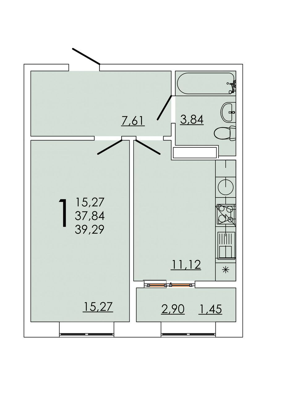 Общая площадь39,29 м²