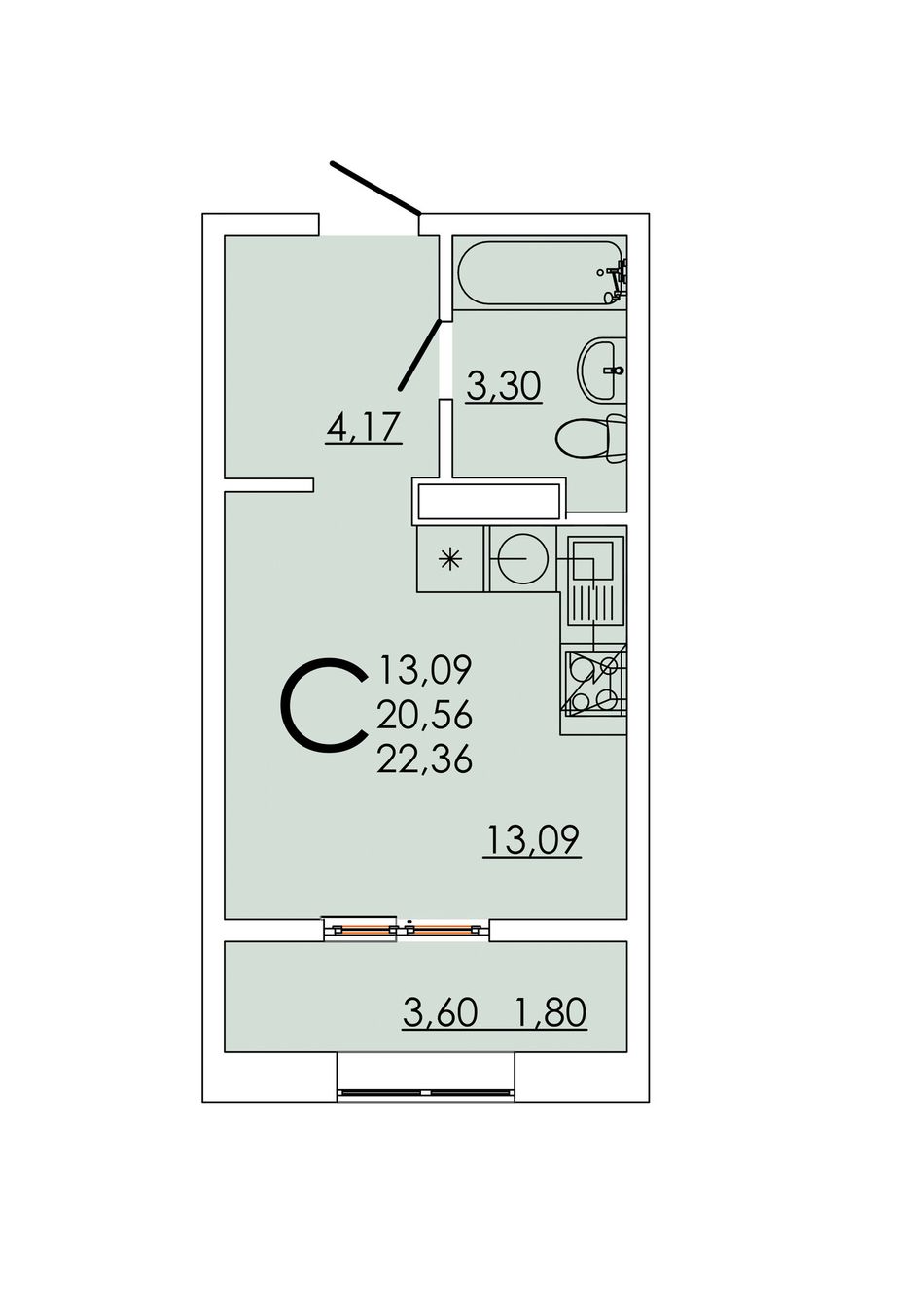 Студия — 22,36 м² 2/24 эт. в Frame (Фрейм)